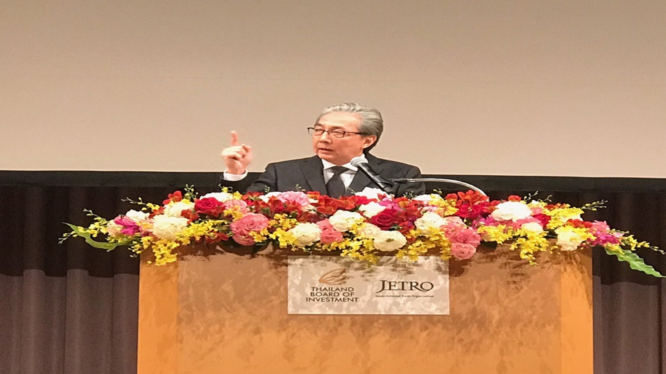 นายสมคิด จาตุศรีพิทักษ์ รองนายกรัฐมนตรี กล่าวบรรยายในงานสัมมนา “Thailand towards Asia Hub” จัดโดยองค์การส่งเสริมการค้าระหว่างประเทศของญี่ปุ่น (เจโทร) และสำนักงานคณะกรรมการส่งเสริมการลงทุน (บีโอไอ) นายสมคิดย้ำว่าประเทศแถบเอเชียมีการเติบโตทางเศรษฐกิจสูงมาก จึงเป็นที่ต้องการเข้ามาลงทุนของต่างชาติ เมื่อไทยกำลังเปลี่ยนแปลงโครงสร้างไปสู่ไทยแลนด์ 4.0 ด้วยการเพิ่มนวัตกรรมใหม่ หวังให้เกิดขึ้นในช่วง 3-4 ปีข้างหน้า ผ่านแผนพัฒนาระเบียงเศรษฐกิจภาคตะวันออก (อีอีซี) รองรับการเปลี่ยนผ่านภาคการผลิตของไทย หากขาดนักลงทุนจากญี่ปุ่นคงพัฒนาไม่สำเร็จ จึงเชิญประธานเจโทรเป็นที่ปรึกษาเพื่อติดต่อกับนักลงทุนญี่ปุ่น เมื่อไทยมีแผนพัฒนาโครงสร้างพื้นฐานหวังให้ญี่ปุ่นมาร่วมพัฒนาอีอีซี ทั้งสนามบิน ท่าเรือ รถไฟรางคู่ โครงสร้างเศรษฐกิจดิจิทัล เพื่อเริ่มก่อสร้างปลายปีนี้หรือต้นปีหน้า