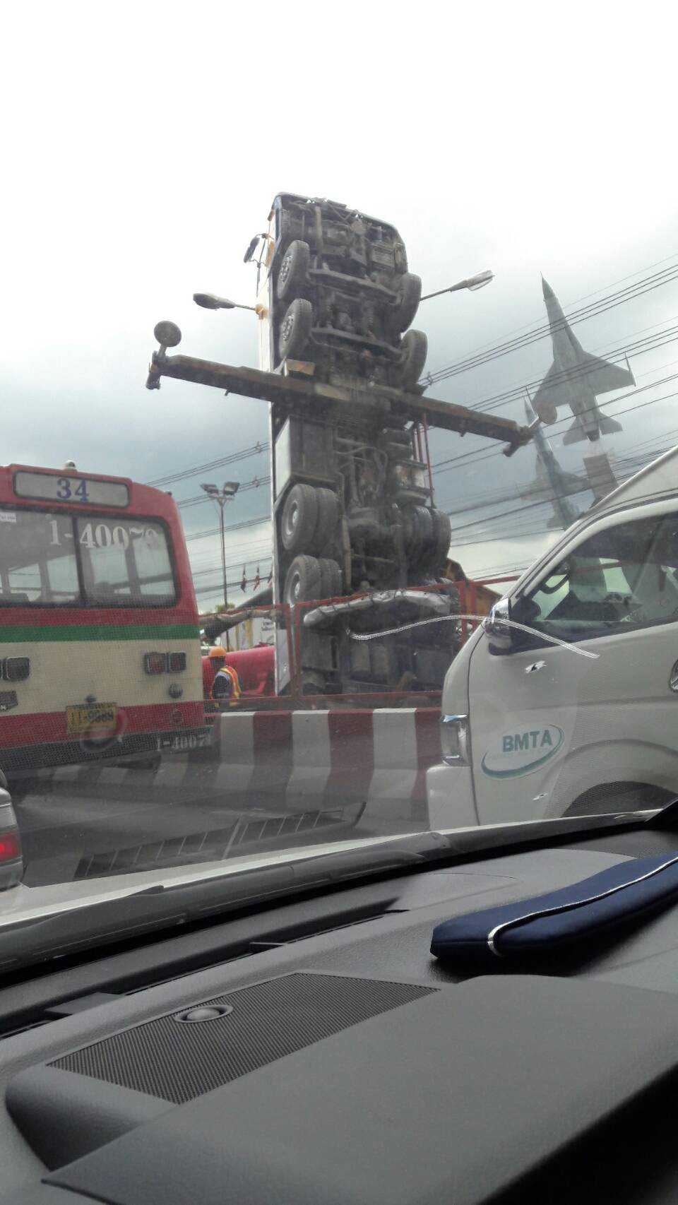 ผู้สื่อข่าวรายงานว่า เมื่อเวลาประมาณ 12.00 น. วันนี้ (7 มิ.ย.) เกิดเหตุรถเครนขณะกำลังยกของในพื้นที่ก่อสร้างรถไฟฟ้าสายสีเขียว ส่วนเหนือ ช่วงหน้าโรงเรียนนายเรืออากาศ ถ.พหลโยธิน ขาออก ล้มในลักษณะหงายท้องตั้งฉากกับพื้นถนน เนื่องจากยกของหนักเกินไป เบื้องต้นไม่มีรายงานผู้ได้รับบาดเจ็บหรือเสียชีวิต และไม่กีดขวางการจราจร แต่มีปัญหาการจราจรติดขัด เนื่องจากผู้ใช้รถใช้ถนนที่สัญจรผ่านต่างชะลอรถดูอุบัติเหตุดังกล่าว เจ้าหน้าที่อยู่ระหว่างการเคลื่อนย้ายรถเครน.-สำนักข่าวไทย