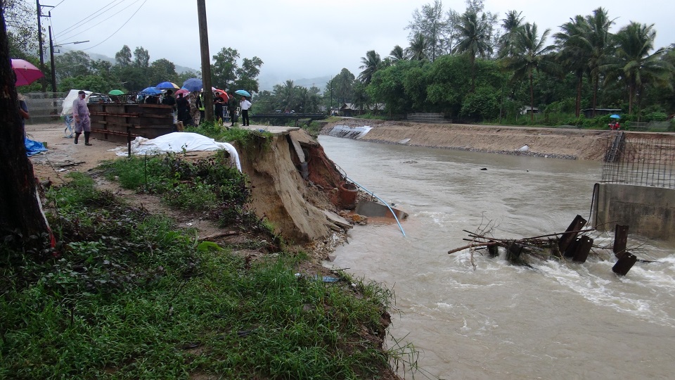 ระนอง 7 มิ.ย.- ฝนกระหน่ำระนองส่งผลกระทบพื้นที่บ้านหงาว น้ำเชี่ยวเซาะสะพานขาด จังหวัดประกาศเป็นพื้นที่ประสบภัยเร่งช่วยเหลือ ห่วงฝนสะสมดินชุ่มน้ำเตือน 3 อำเภอ เฝ้าระวังจุดเสี่ยง