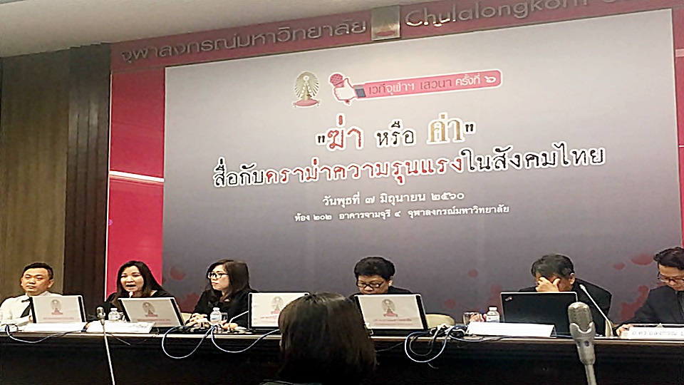 จุฬาฯ7 มิ.ย.- ในเวทีจุฬาเสวนาฯ ครั้งที่ 6 เรื่อง ‘ฆ่า หรือ ค่า สื่อกับดราม่าความรุนแรงในสังคมไทย’ นักวิชาการชี้เหตุการณ์ ‘เปรี้ยว’ ฆ่าหั่นศพ นับเป็นปรากฏการณ์ใหม่ของการนำเสนอที่สื่อหลักเป็นผู้ตามกระแสสื่อออนไลน์ ขณะเดียวกันเกิดความน่าเชื่อถือเพจสายดาร์กมากเป็นปรากฏการณ์ สื่อหลักไม่ได้ป้องปรามหรือคิดถึงผลกระทบพอควร ห่วงเด็ก 7-8 ปี มีพฤติกรรมเลียนแบบ