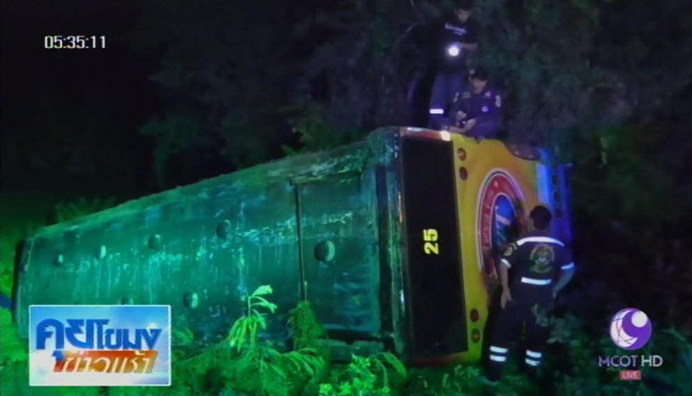 ขณะที่นายยุทธนา แย้มสวน อายุ 60 ปี คนขับรถบัส เล่าว่า ขณะเกิดเหตุมีรถกระบะแซงด้านขวาและปาดหน้า จึงหักหลบและเสียหลักพลิกคว่ำ โดยรถกระบะได้หลบหนีไป และจากการตรวจสอบรถบัส ทราบว่ามีกล้องหน้ารถ แต่ยังหาไม่พบในที่เกิดเหตุ ซึ่งตำรวจได้ขอความร่วมมือเจ้าหน้าที่กู้ภัยช่วยค้นหา เพื่อนำมาเป็นพยานหลักฐานในการติดตามรถกระบะคู่กรณีมาดำเนินคดีต่อไป. – สำนักข่าวไทย