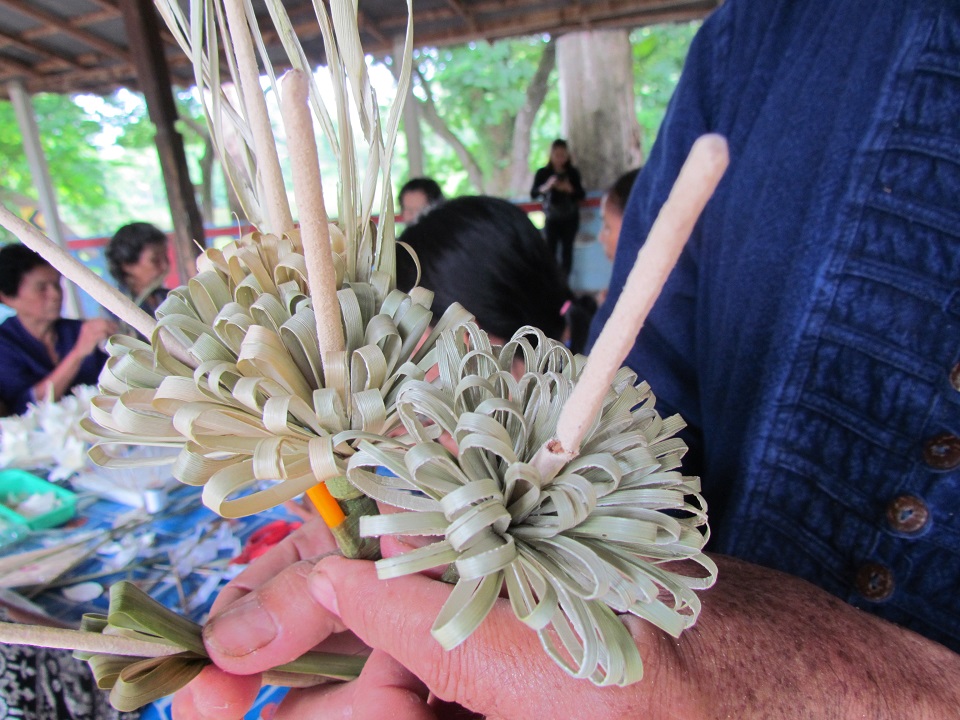 น่าน 12 มิ.ย.- อีกหนึ่งรูปแบบดอกไม้จันทน์ประดิษฐ์จากหญ้าแฝกที่จังหวัดน่าน จิตอาสาตระเวนสอนทุกชุมชนด้วยสำนึกในพระมหากรุณาธิคุณและสืบสานตามรอยพระราชปณิธานองค์ภูมิพล รัชกาลที่ 9 การได้คุณประโยชน์จากหญ้าแฝก