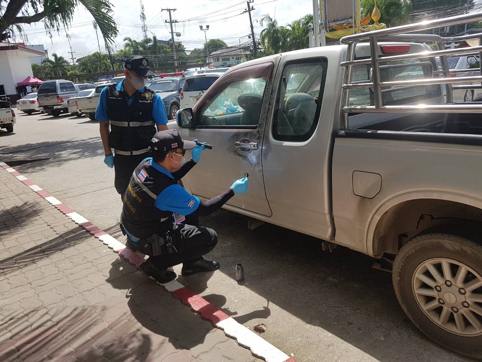 ล่าสุดเจ้าหน้าที่วิทยาการกองพิสูจน์หลักฐานภูธรจังหวัดระยองได้ตรวจเก็บรอยลายนิ้วมือแฝงรอบรถไว้เป็นเบาะแส เพื่อตามตัวผู้ขโมยเงินดังกล่าวมาดำเนินคดี.-สำนักข่าวไทย