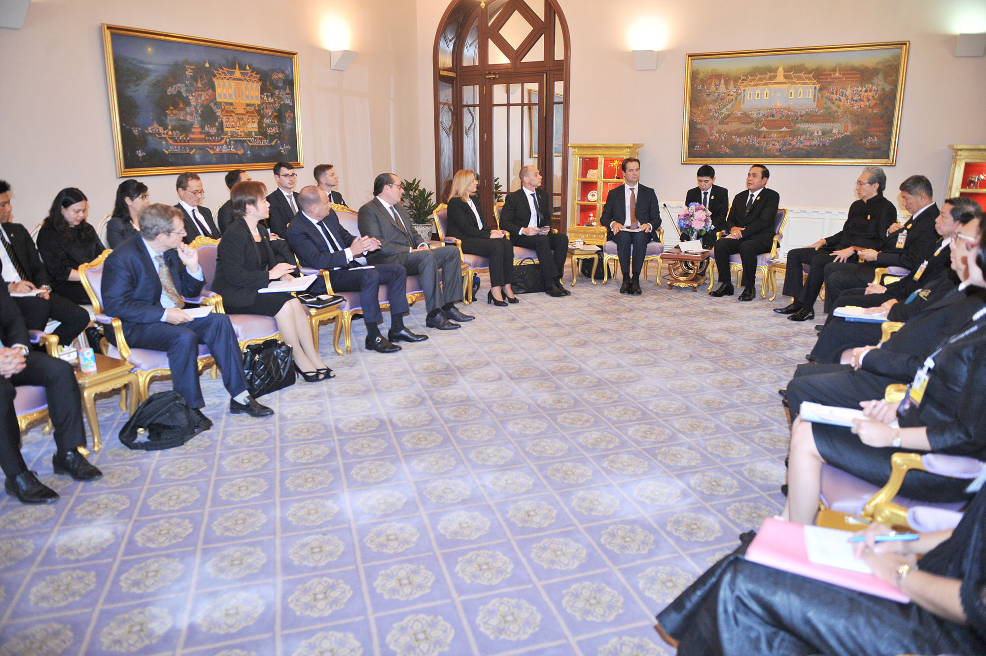 นายมาร์ค แวน บินส์เบอร์เก็น ประธานกรรมการบริหาร ธนาคาร Rabobank เนเธอร์แลนด์ หัวหน้าคณะนักธุรกิจ Europe – ASEAN Business Alliance แสดงความขอบคุณ พร้อมชื่นชมนโยบาย Thailand 4.0 และการปรับปรุงกฎหมายต่างๆของไทยเพื่อกระตุ้นให้เกิดการลงทุนให้ดียิ่งขึ้น ซึ่งสอดคล้องกับการดำเนินธุรกิจของบริษัทจากยุโรป ขณะเดียวกันยังกังวลเกี่ยวกับการกำหนดราคากลางยา และความต่อเนื่องของนโยบายทางเศรษฐกิจและการลงทุนของไทย ซึ่งนายกรัฐมนตรียินดีรับฟังและรับข้อพิจารณาไปหารือในรายละเอียดกับหน่วยงานที่เกี่ยวข้องต่อไป.-สำนักข่าวไทย