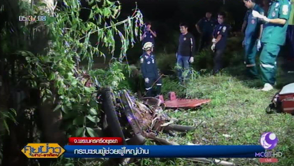 เมื่อเวลาประมาณ 00.30 น. ที่ผ่านมา (17 มิ.ย) ตำรวจ สภ.อุทัย รับแจ้งเหตุมีรถกระบะชน จยย.ตกลงไปข้างทาง มีผู้เสียชีวิต 1 ราย บนถนนสายวัดสะแก-อุทัย ม.12 ต.ธนู อ.อุทัย จ. พระนครศรีอยุธยา ที่เกิดเหตุพบรถยนต์กระบะ 4 ประตู สีดำ ยี่ห้อโตโยต้า รุ่นวีโก้ หมายเลขทะเบียน กค 8633 อ่างทอง สภาพกันชนด้านหน้ารถหลุด มีรอยยุบเข้าไปเกือบถึงห้องเครื่อง อยู่ข้างทางในพงหญ้าที่มีน้ำขัง ใกล้กันพบ จยย.ฮอนด้า รุ่นสมาย สีดำม่วง หมายเลขทะเบียน กธค 923 พระนครศรีอยุธยา สภาพรถ จยย.ถูกอัดเข้ากับต้นไม้เสียหายทั้งคัน และยังพบผู้เสียชีวิตเป็นชาย 1 ราย นอนอยู่ในพงหญ้าข้างทาง สภาพขาและแขนหัก ตรวจสอบภายในตัวพบกระเป๋าสตางค์ มีบัตรประชาชนและบัตรผู้ช่วยผู้ใหญ่บ้าน ทราบชื่อนายสม จำแนกมิตร อายุ 56 ปี เป็นผู้ช่วยผู้ใหญ่บ้าน ม.8 ต.ธนู อ.อุทัย จ.พระนครศรีอยุธยา และมีผู้ได้รับบาดเจ็บอีก 2 ราย เป็นชาย 1 หญิง 1 นำส่งโรงพยาบาลอุทัย ชื่อนายกฤษณ คงสมปราชญ์ อายุ 43 ปี คนขับรถกระบะ และนางวันดี ผิวละเอียด อายุ 44 ปี