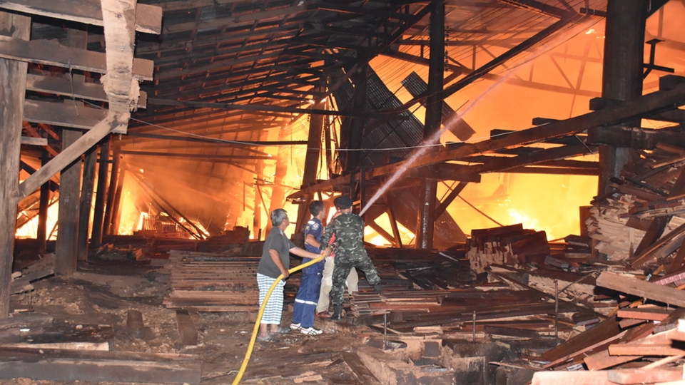 กาญจนบุรี 17 มิ.ย.-เกิดเหตุเพลิงโหมโรงเลื่อยที่กาญจนบุรี วอดเสียหายกว่า 50 ล้านบาท คาดสาเหตุอาจมาจากไฟฟ้าลัดวงจรหรือคนงานทิ้งก้นบุหรี่