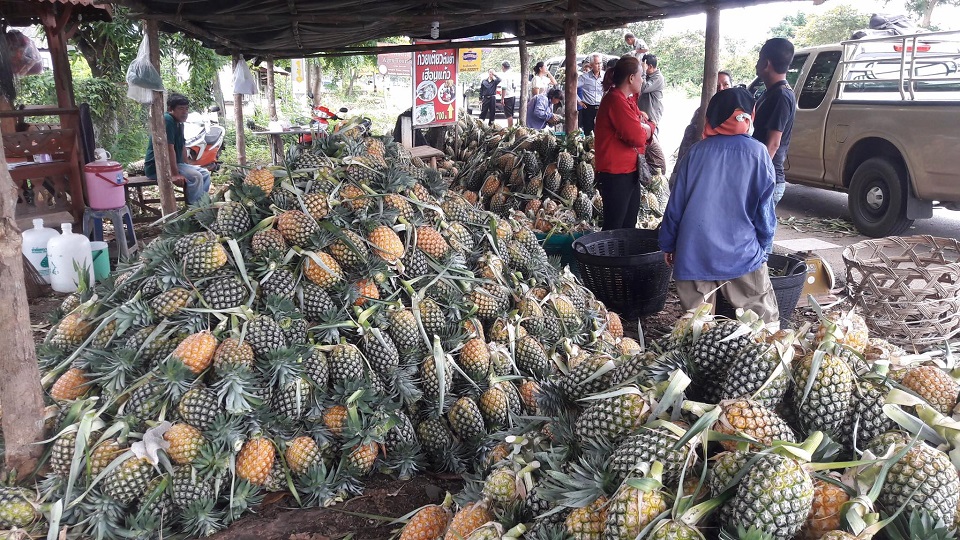นายสุวัฒน์ พรมสุวรรณ ผู้ว่าราชการจังหวัดลำปาง ลงพื้นที่ติดตามจุดจำหน่ายสับปะรดแหล่งใหญ่ริมไร่ในเขต ต.บ้านเสด็จ อ.เมืองลำปาง หลังได้รับรายงานเกษตรกรเริ่มประสบปัญหาความเดือดร้อนจากผลผลิตล้นตลาด และโรงงานไม่สามารถรับซื้อได้ทั้งหมด โดยช่วงเดือนมิถุนายนนี้ มีผลผลิตออกมาพร้อมกันถึง 23,000 กิโลกรัม ทำให้เกษตรกรในพื้นที่กว่า 1,000 ราย เร่งนำผลผลิตออกมาขายลดราคาตามไร่สับปะรดริมถนนซูเปอร์ไฮเวย์ สายลำปาง-งาว-พะเยา ดีกว่าปล่อยให้เน่าเสีย ส่งผลให้ราคาผลผลิตตกต่ำอย่างมาก ขณะนี้เหลือเพียงกิโลกรัมละ 1.50 บาท ถือว่าต่ำเป็นประวัติการณ์