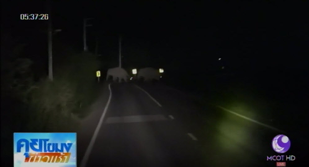 โดยช้างป่า 2 ตัว อายุประมาณ 10-12 ปี สภาพอ้วนท้วนสมบูรณ์ ลักษณะเป็นเพื่อนกัน วิ่งข้ามถนนสายวังน้ำเขียว-เขาใหญ่ ไปกัดกินไร่อ้อยของชาวบ้านที่กำลังเจริญเติบโตเต็มที่ เนื่องจากมีความชุมชื้นจากฝนที่ตกลงมาต่อเนื่อง สร้างความเสียหายเป็นบริเวณกว้าง
