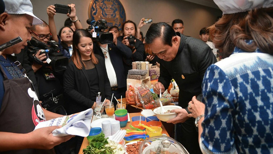 พล.อ.ประยุทธ์ เยี่ยมชมสินค้าที่จะมีการนำมาจัดแสดงและให้คำแนะนำในการผลิตสินค้าให้มีความทันสมัย ได้มาตรฐานเพื่อเพิ่มมูลค่า ก่อนที่จะร่วมปรุงลาบเป็ดบ้านเชียง 5,000 ปี ร้านชื่อดังของจังหวัดอุดรธานี ซึ่งเจ้าของร้านได้นำลาบเป็ดสูตรต้นตำรับมาให้นายกรัฐมนตรีชิม ระหว่างที่กำลังปรุงด้วย
