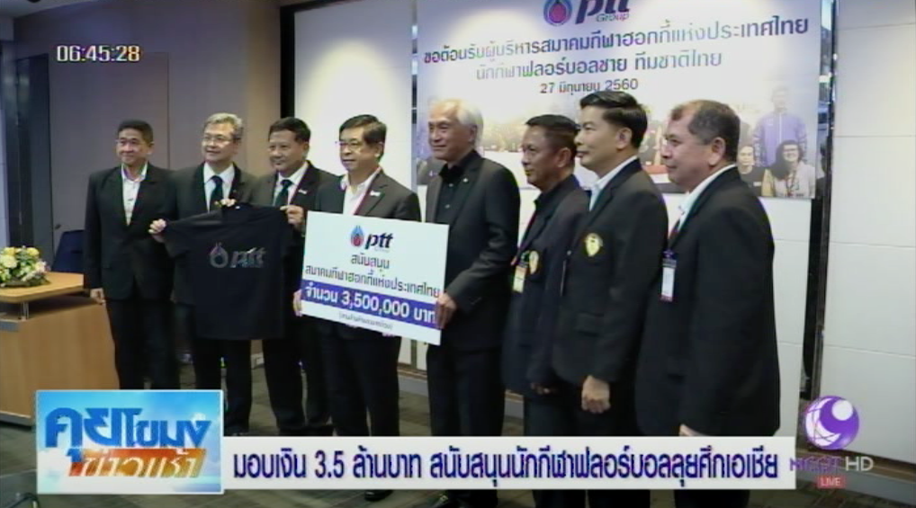 กทม. 28 มิ.ย.- ปตท.มอบเงินสนับสนุนนักกีฬาฟลอร์บอล 3.5 ล้านบาท เพื่อสร้างขวัญกำลังใจก่อนลุยศึกชิงแชมป์เอเชียต้นเดือนหน้า