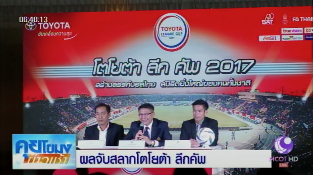 พล.ต.ท.พิสัณห์ จุลดิลก เลขาธิการสมาคมกีฬาฟุตบอลแห่งประเทศไทย เป็นประธานการจับฉลากประกบคู่ฟุตบอลโตโยต้า ลีกคัพ 2017 รอบ 32 ทีมสุดท้าย โดยมีทีมจากลีกรอง 14 ทีม ที่ผ่านเข้ารอบมาพบกับทีมจากไทยพรีเมียร์ลีกอีก 18 ทีมเป็น 32 ทีม แข่งขันแบบน็อกเอาท์ ปรากฏว่า “บิ๊กแมตช์” เป็นการพบกันระหว่าง “กิเลนผยอง” เอสซีจี เมืองทองฯ แชมป์เก่าร่วมเมื่อปีที่แล้ว พบกับ “กระต่ายแก้ว” บางกอกกล๊าส ด้าน บุรีรัมย์ ยูไนเต็ด แชมป์อีกทีม ออกไปเยือน ชัยนาท
