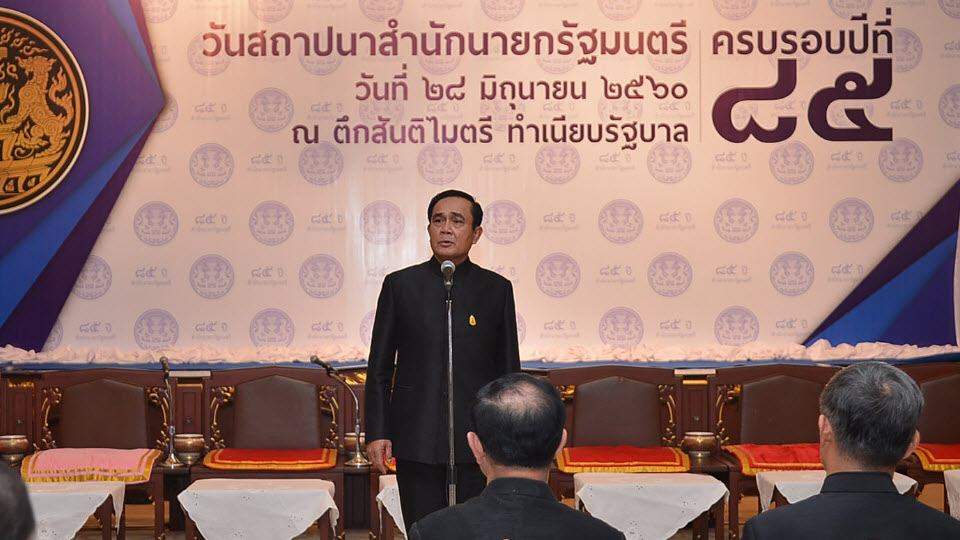 ทำเนียบฯ 28 มิ.ย.- นายกฯ เป็นประธานวันคล้ายวันสถาปนาสำนักนายกรัฐมนตรี 85 ปี ระบุ 85 ปีของประชาธิปไตย ขอเป็นปีแห่งประชาธิปไตยที่มีธรรมาภิบาล ขอให้ข้าราชการทำงานเพื่อประเทศ ยึดหิริโอตัปปะ
