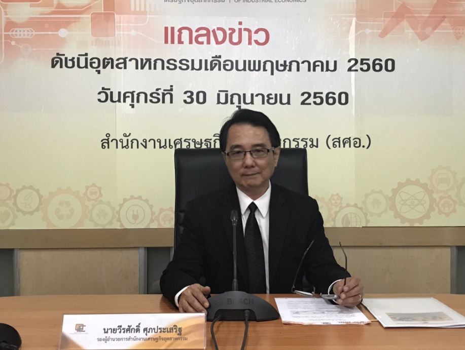 นายวีรศักดิ์ ศุภประเสริฐ รองผู้อำนวยการ สำนักงานเศรษฐกิจอุตสาหกรรม (สศอ.) เปิดเผยว่า ดัชนีผลผลิตอุตสาหกรรมเดือนพฤษภาคมขยายตัวขึ้นร้อยละ 1.4 เมื่อเทียบจากช่วงเดียวกันปีก่อน ส่งผลให้ดัชนีผลผลิตอุตสาหกรรม 5 เดือนแรกปี 2560 ขยายตัวร้อยละ 0.15 ส่งสัญญาณบ่งบอกว่าเศรษฐกิจไทยกำลังฟื้นตัว