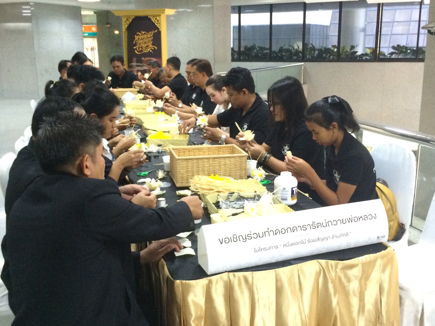 ธอส. 30 มิ.ย. – ประชาชนร่วมประดิษฐ์ดอกไม้จันทน์ในโครงการ “หนึ่งดอกไม้ ร้อยสัญญา ล้านภักดี” เพื่อน้อมรำลึกใน ระมหากรุณาธิคุณของพระบาทสมเด็จพระปรมินทรมหาภูมิพลอดุลยเดช