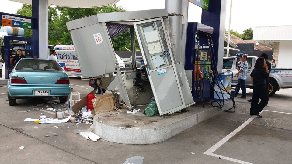 ลำปาง 1 ก.ค.-อดีตทหารยศ พ.ต.วัย 82 ปี เพิ่งถอยรถเก๋งเกียร์อัตโนมัติมาขับเป็นครั้งแรก หลังเคยขับแต่รถเกียร์ธรรมดามาตลอดชีวิต เกิดเข้าเกียร์ผิดขณะแวะเติมน้ำมันที่ปั๊ม พุ่งชนตู้แคชเชียร์พังกระจาย สาวแคชเชียร์นั่งเก็บเงินในตู้โชคดีไม่เป็นอะไรมาก