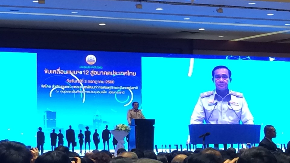 พล.อ.ประยุทธ์ จันทร์โอชา นายกรัฐมนตรีและหัวหน้าคณะรักษาความสงบแห่งชาติ (คสช.) เป็นประธานเปิดการประชุม “ขับเคลื่อนแผนฯ 12 สู่อนาคตประเทศไทย” ในการประชุมประจำปี 2560 ของสำนักงานคณะกรรมการพัฒนาการเศรษฐกิจและสังคมแห่งชาติ (สศช.) พร้อมกล่าวปาฐกถาพิเศษ เรื่อง “สานพลังทุกภาคส่วนขับเคลื่อนการพัฒนาสู่อนาคตประเทศไทย” โดยนายกรัฐมนตรี กล่าวว่า ขณะนี้รัฐบาลกำลังเดินหน้าระยะที่ 2 ตามโรดแมปที่วางไว้ และเตรียมส่งงานต่อไปยังรัฐบาลหน้า