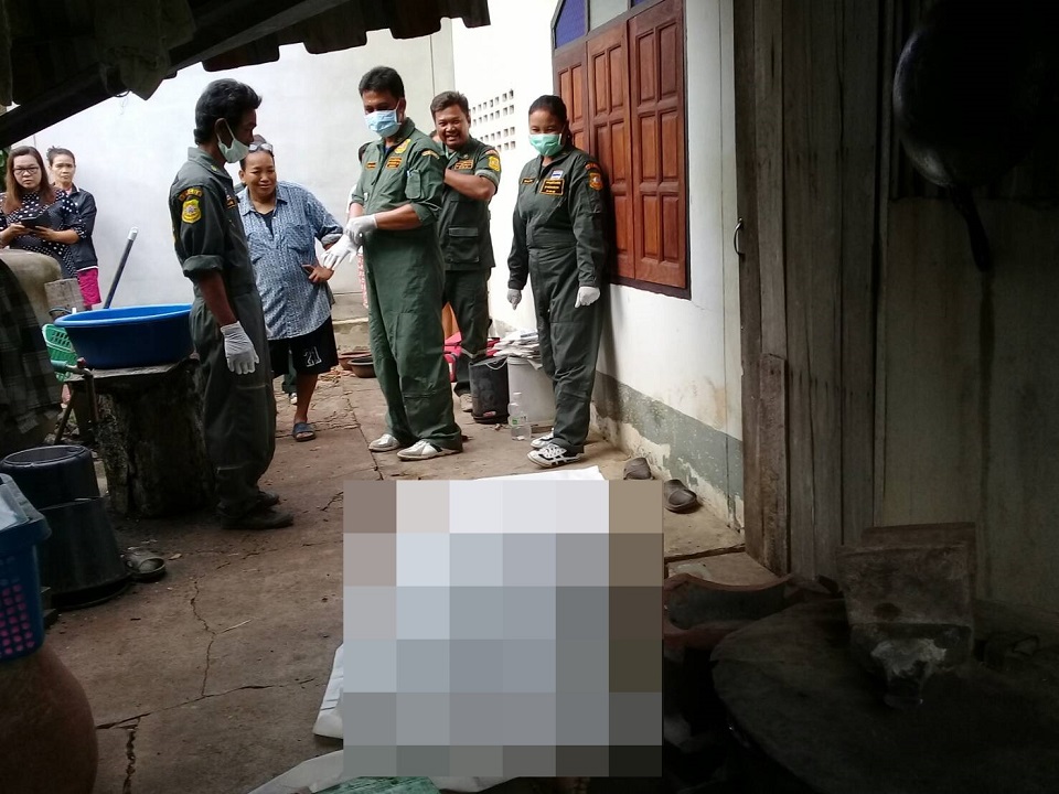 กกหูซ้ายเป็นรอยเขียวช้ำ คาดว่าถูกทำร้ายช่วงเช้ามืด และก่อนเกิดเหตุพ่อของผู้เสียชีวิตมาหาที่บ้านและพบศพลูกสาว จึงไปปลุกลูกเขยนอนอยู่กับลูกสาววัย 3 เดือน ให้มาดูพร้อมสอบถามเรื่องราว แต่ลูกเขยหรือสามีของผู้เสียชีวิตบอกว่าไม่รู้เรื่อง ซึ่งเจ้าหน้าที่ได้เก็บมีดยาวประมาณ 40 เซนติเมตร ตกอยู่ใกล้ศพไว้เป็นหลักฐาน เพื่อนำไปตรวจสอบลายนิ้วมือและดีเอ็นเอ