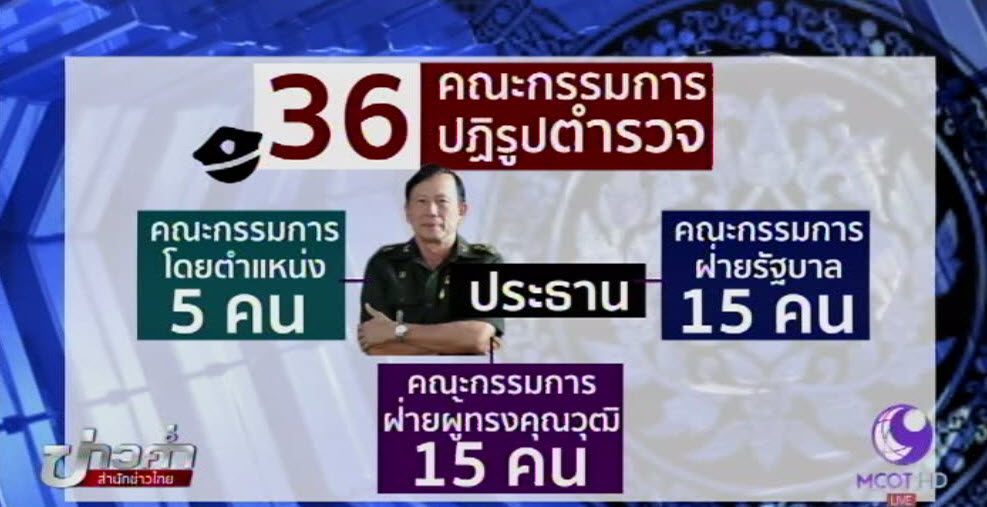 กทม. 5 ก.ค. – สำหรับรายชื่อคณะกรรมการปฏิรูปตำรวจทั้ง 36 คน มีทั้งทหาร ตำรวจ และพลเรือนรวมอยู่ในคณะ ซึ่งเป็นกรรมการจากฝั่งรัฐบาล และกรรมการผู้ทรงคุณวุฒิจากแวดวงวิชาการที่เกี่ยวข้อง