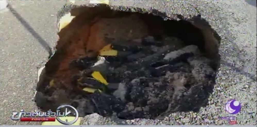 เจ้าหน้าที่เข้าตรวจสอบ เบื้องต้นคาดน้ำกัดเซาะบริเวณชั้นใต้ดินจนทรุดตัว เร่งติดตั้งสัญญาณเตือนรถที่สัญจรผ่านให้ใช้ความระมัดระวัง และภายในวันนี้จะนำเครื่องจักรกลขนาดใหญ่เข้าทำการซ่อมแซม. – สำนักข่าวไทย