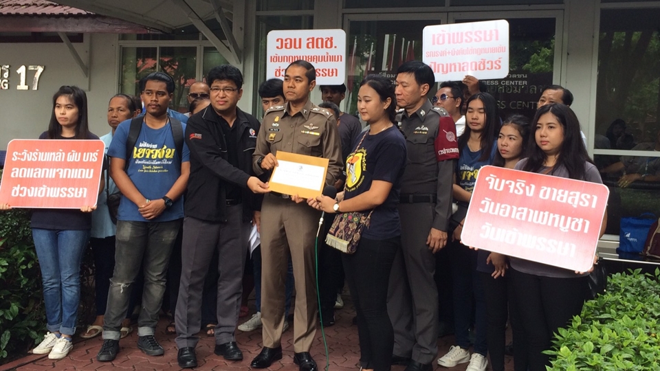 นายวิษณุ ศรีทะวงศ์ ผู้จัดการแผนนโยบายสาธารณะ สำนักงานเครือข่ายองค์กรงดเหล้า หรือ สคล. พร้อมเครือข่ายเยาวชนป้องกันนักดื่มหน้าใหม่ และเครือข่ายผู้ได้รับผลกระทบจากเครื่องดื่มแอลกอฮอล์ ยื่นหนังสือถึงพลตำรวจเอกจักรทิพย์ ชัยจินดา ผ่านพันตำรวจเอก กฤษณะ พัฒนเจริญ รองโฆษกสำนักงานตำรวจแห่งชาติ เพื่อขอให้ยกระดับการบังคับใช้กฎหมายควบคุมเครื่องดื่มแอลกอฮอล์ โดยเฉพาะช่วงเข้าพรรษา 3 เดือน และเข้มงวดบังคับใช้กฎหมายห้ามขายเครื่องดื่มแอลกอฮอล์ วันอาสาฬหบูชาและวันเข้าพรรษา