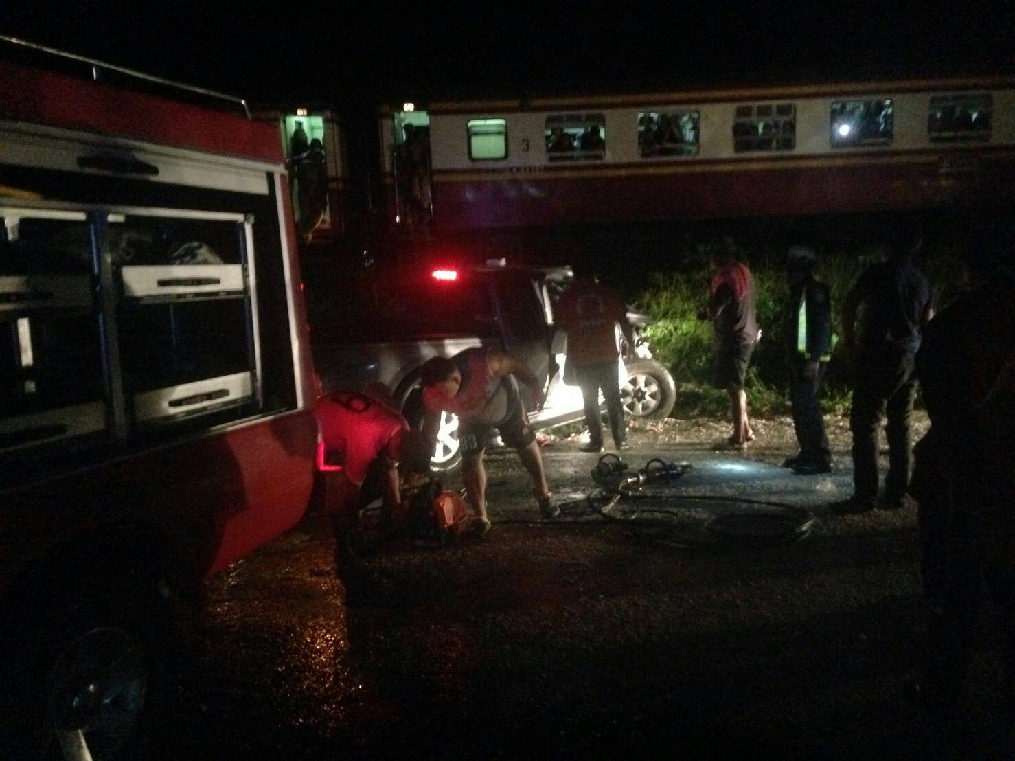 สุราษฎร์ธานี 31 ต.ค.- เกิดอุบัติเหตุรถไฟชนกระบะทางจุดตัดในหมู่บ้านที่สุราษฎร์ฯ เมื่อเช้ามืด คนขับเสียชีวิต และภรรยาบาดเจ็บ คาดไม่ทันสังเกตและเป็นทางตัดไม่มีแผงกั้น