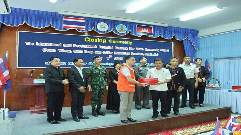 ด้านนายสรรชัย ชอบพิมาย ผู้อำนวยการสำนักงานพัฒนาฝีมือแรงงานศรีสะเกษ กล่าวว่า กพร.ได้มอบหมายให้สำนักงานพัฒนาฝีมือแรงงานศรีสะเกษ ร่วมกับสถาบันพัฒนาฝีมือแรงงานนานาชาติ จัดทำโครงการพัฒนาศักยภาพกลุ่มเครือข่ายแรงงานนานาชาติ รองรับประชาคมอาเซียน (จังหวัดพระวิหาร จังหวัดเสียมราฐ และจังหวัดอุดรมีชัย ราชอาณาจักรกัมพูชา) ประจำปีงบประมาณ 2560 ให้สอดรับนโยบายและยุทธศาตร์เร่งด่วนของรัฐบาล การเพิ่มขีดความสามารถในการแข่งขันของไทยและอาเซียน (Country Strategy) โดยจัดฝึกอบรมหลักสูตรยกระดับฝีมือ ให้กับหัวหน้างาน ครูฝึกและกำลังแรงงาน เพื่อแลกเปลี่ยนทักษะฝีมือแรงงานระหว่างกัน สร้างความร่วมมือในการลดปัญหาข้ามชาติของทั้งสองประเทศ อาทิ อาชญากรรม ยาเสพติด และการค้ามนุษย์ และสร้างแรงงานฝีมือให้กับประเทศเพื่อนบ้านรองรับการย้ายฐานการผลิตของผู้ประกอบการ ทั้งภาคอุตสาหกรรมและการบริการ
