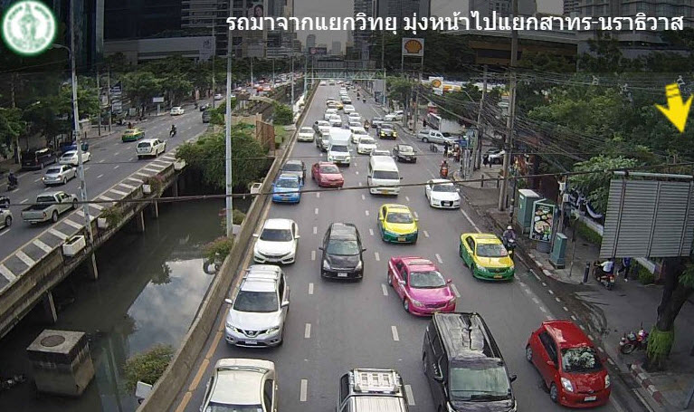 สภาพการจราจร ถนนสาทรใต้ จากแยกวิทยุ มุ่งหน้าแยกสาทร-นราธิวาส รถหนาแน่น เคลื่อนตัวช้า