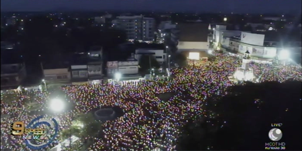 ลำปาง 30 ต.ค.-ชาวลำปางกว่า 30,000 คนพร้อมใจจุดเทียนแสดงความอาลัยในกิจกรรม “กอดรูปพ่อไว้แนบใจหมื่นดวงใจ ถวายอาลัยผ่านแสงเทียน”