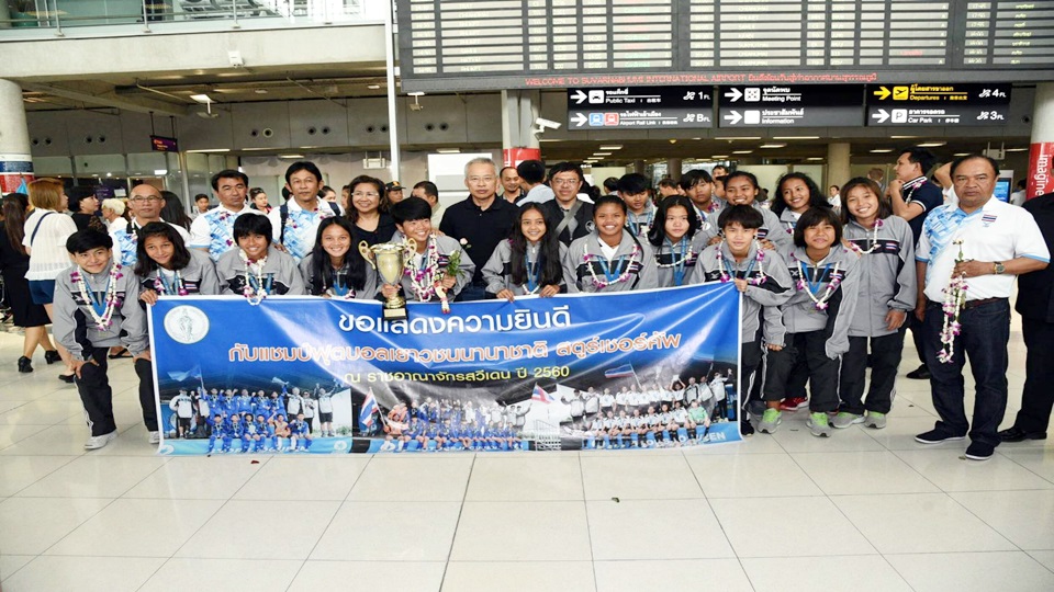 กทม.12 ก.ค.-กทม.จัดต้อนรับอบอุ่นนักเตะชุดแชมป์สตูร์เชอร์คัพ 2017 ที่สวีเดน กลับถึงไทย