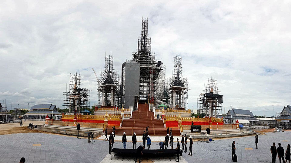 สนามหลวง 13 ก.ค.- ความคืบหน้าการจัดสร้างพระเมรุมาศ พระบาทสมเด็จพระปรมินทรมหาภูมิพลอดุลยเดช คืบหน้าแล้วมากกว่าร้อยละ 60 ขณะที่เจ้าหน้าที่เริ่มติดส่วนประกอบพระโกศจันทน์