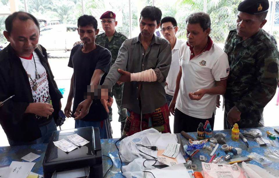 ระนอง 15 ก.ค.-ทหารสนธิกำลังตำรวจจับกุมชายต่างด้าว 2 คน พร้อมอุปกรณ์ผลิตธนบัตรปลอม คาบ้านเช่ากลางสวนปาล์มน้ำมัน จ.ระนอง อ้างเป็นของเพื่อนชาวอินเดียอีกคนที่มาฝากไว้