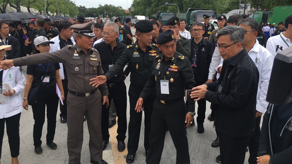 บรรยากาศภายในกองอำนวยการร่วมรักษาความสงบเรียบร้อยบริเวณโดยรอบพระบรมมหาราชวัง (กอร.รส.) นำโดย พล.ต.สันติพงศ์ ธรรมปิยะ รองแม่ทัพภาคที่ 1 พล.ต.ท.อำนวย นิ่มมะโน รองผู้ว่าราชการกรุงเทพมหานคร และ พล.ต.ต.วิชาญญ์วัชร์ บริรักษ์กุล ผู้บังคับการกองบัญชาการตำรวจนครบาล 1 ผู้แทนจากทุกหน่วยงานที่เกี่ยวข้อง เข้าร่วมประชุมหารือ เตรียมความพร้อมสำหรับเส้นทางริ้วขบวนพระอิสริยยศ พระราชพิธีถวายพระเพลิงพระบรมศพ พระบาทสมเด็จพระปรมินทรมหาภูมิพลอดุลยเดช