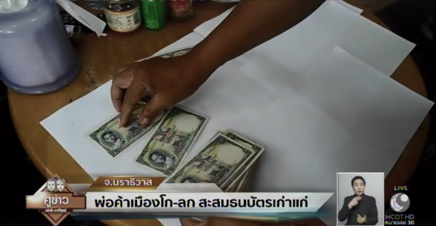 นายสุรพล พูลสวัสดิ์ อายุ 61 ปี ซึ่งเป็นเอเย่นต์ขายส่งน้ำแข็งหลอดและน้ำดื่ม ชาวตำบลปาเสมัส อำเภอสุไหงโก-ลก จังหวัดนราธิวาส นั่งเรียงธนบัตรจำนวนหนึ่งที่เก็บสะสมไว้ภายในร้าน โดยธนบัตรดังกล่าวมีพระบรมสาทิสลักษณ์ของพระบาทสมเด็จพระปรมินทรมหาภูมิพลอดุลยเดช และพระบรมสาทิสลักษณ์ของพระบาทสมเด็จพระปรมินทรมหาอานันทมหิดล รัชกาลที่ 8 โดยได้มีการอัดใส่กรอบพลาสติกไว้เป็นอย่างดี มีทั้งธนบัตรใบละ 10, 50, 100 และ 500 ที่เคยผลิตออกมาใช้กันในปีต่าง ๆ รวมทั้งธนบัตร ซึ่งผลิตไว้เป็นที่ระลึก ซึ่งประเมินมูลค่าไม่ได้เป็นจำนวนมาก