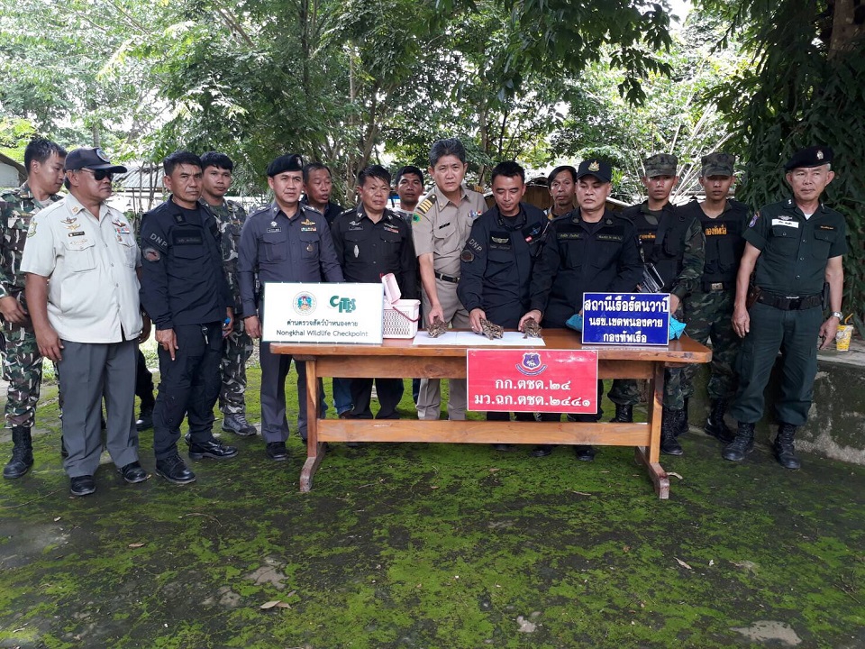 นายกิตติชัย รุ่งไพบูลย์วงศ์ หัวหน้าสำนักงานสนับสนุนการป้องกันและปราบปรามที่ 2 ภาคตะวันออกเฉียงเหนือ นายประสิทธิ์ พุทธบูชา หัวหน้าด่านสัตว์ป่าหนองคาย ประสานตำรวจ สภ.รัตนวาปี และหน่วยงานที่เกี่ยวข้อง จับกุมนางสุนทะลี พิมมะสอน อายุ 41 ปี ชาวบ้าน สปป.ลาว พร้อมของกลางลูกเสือปลา หรือลูกเสือแผ้ว ลักษณะเพิ่งคลอดได้ไม่กี่วัน จำนวน 3 ตัว ซึ่งเป็นสัตว์ป่าคุ้มครองตาม พ.ร.บ.สงวนและคุ้มครองสัตว์ป่า พ.ศ.2535 ลำดับที่ 183 การจับกุมครั้งนี้ เจ้าหน้าที่สืบทราบว่า นางสุนทะลีลักลอบนำสัตว์ป่าเข้ามาขายในฝั่งไทยบ่อยครั้ง จึงจับตาดูพฤติกรรม และพบนางสุนทะลี พร้อมตะกร้า นั่งเรือข้ามแม่น้ำโขงมาที่ตลาดจุดผ่อนปรนบ้านเปงจาน จุดผ่อนปรนไทย-ลาว อ.รัตนวาปี จ.หนองคาย เจ้าหน้าที่จึงเรียกตรวจค้น พบกระสอบปุ๋ยใส่ลูกเสือปลา ส่วนแม่เสือคาดว่าถูกทำร้าย
