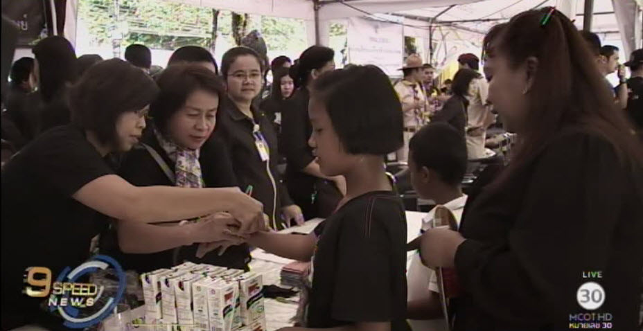 ที่เต็นท์หมายเลข 41 และ 42 ของกระทรวงการพัฒนาสังคมและความมั่นคงของมนุษย์ (พม.) ได้แจกสายรัดข้อมือให้เด็กที่ติดตามผู้ปกครองมาร่วมถวายความอาลัยและถวายสักการะเบื้องหน้าพระโกศ พระบรมศพพระบาทสมเด็จพระปรมินทรมหาภูมิพลอดุลยเดช ด้านในพระบรมมหาราชวัง โดยที่สายรัดข้อมือจะมีชื่อ นามสกุล และเบอร์โทรศัพท์ ที่สามารถติดต่อผู้ปกครองได้ หากเกิดกรณีพลัดหลง นอกจากนี้ พม.ยังจัดอาสาสมัคร ลูกเสือและเนตรนารี พร้อมวีลแชร์ให้กับผู้สูงอายุ ผู้พิการ ซึ่งทุกคนก็ดีใจที่มีการอำนวยความสะดวกให้เพื่อจะได้รวดเร็ว และไม่ทำให้คนอื่นเสียเวลา. -สำนักข่าวไทย