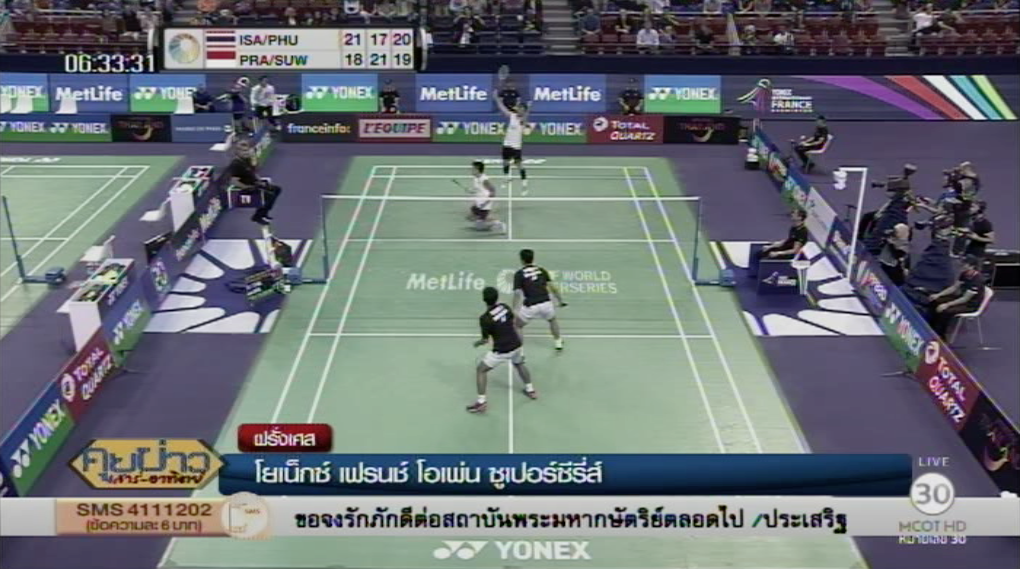 ฝรั่งเศส 30 ต.ค.- บดินทร์ อิสสระ กับ นิพิฐพนธ์ พวงพั่วเพชร ผ่านเข้ารอบชิงชนะเลิศแบดมินตันประเภทชายคู่ ระดับซูเปอร์ซีรีส์ รายการโยเน็กซ์ เฟรนช์ โอเพ่น