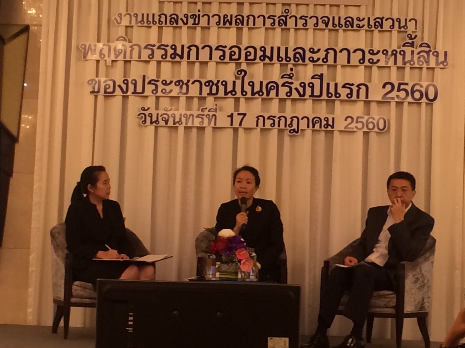 นายสุรพล โอภาสเสถียร ผู้จัดการใหญ่ บริษัท ข้อมูลเครดิตแห่งชาติ เปิดเผยว่า ภาระหนี้ภาคครัวเรือนทั้งระบบ 11.4 ล้านล้านบาท ช่วงไตรมาสแรกปี 2560 เพิ่มขึ้นจากปีก่อน 345,000 ล้านบาท หรือเพิ่มขึ้นร้อยละ 3.1 จากปี 2559 คิดเป็นสัดส่วนร้อยละ 78.6 ของจีดีพี ส่วนใหญ่มีภาระหนี้จากสถาบันการเงิน สหกรณ์ทางการเงินทุกประเภท บัตรเตรดิตประเภทต่าง ๆ พบว่าคนวัยทำงานอายุน้อยมีภาระหนี้สูงจากโครงการรถยนต์คันแรก คนปัจจุบันเป็นหนี้เร็ว ยอดหนี้มากขึ้น และเป็นหนี้นานขึ้น สถานะหนี้ปัจจุบันจึงน่าเป็นห่วง คุณภาพของหนี้ครัวเรือน