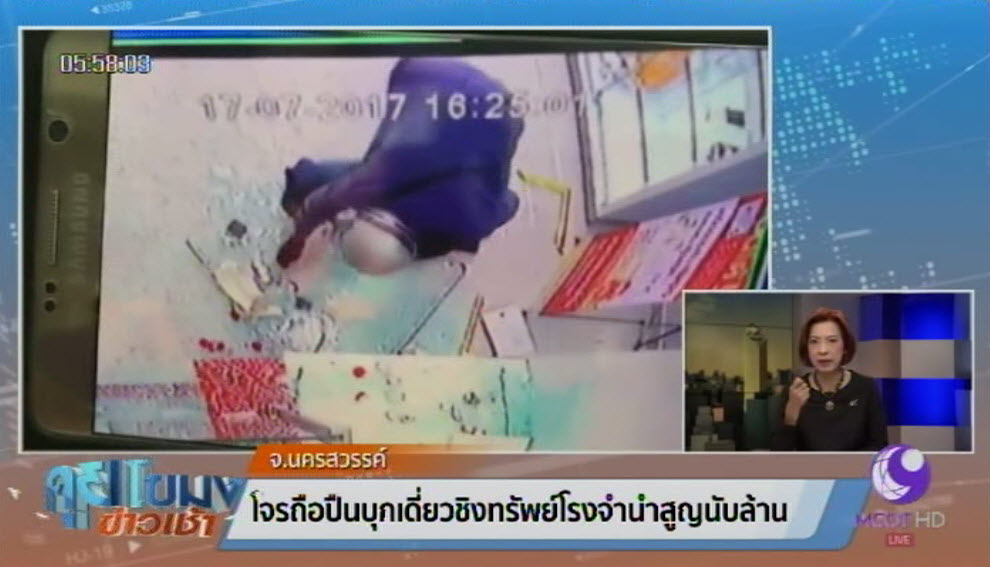นครสวรรค์ 18 ก.ค. – คนร้ายสวมหมวกกันน็อคบุกเดี่ยวชิงทรัพย์โรงจำนำกลางเมืองนครสวรรค์ ก่อนวิ่งไปขี่รถจักรยานยนต์หลบหนีลอยนวล