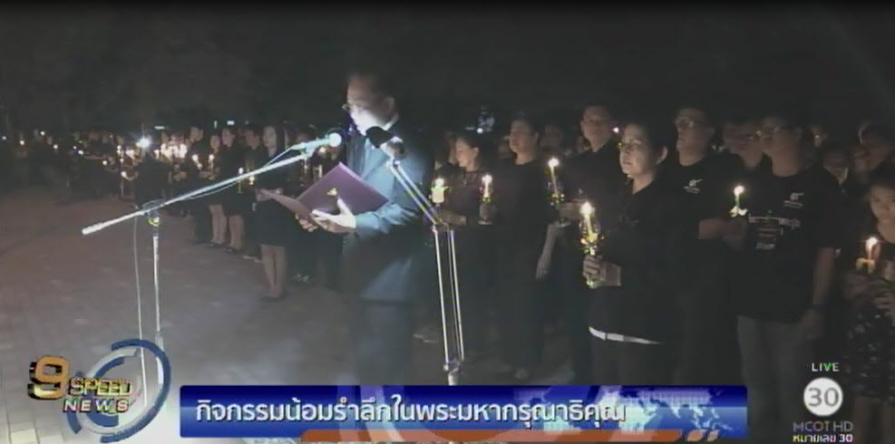 ข้าราชการ ประชาชนทุกหมู่เหล่าในจังหวัดลำพูนกว่า 2,000 คน ร่วมจุดเทียนน้อมรำลึกในพระมหากรุณาธิคุณของพระบาทสมเด็จพระปรมินทรมหาภูมิพลอดุลยเดช ที่บริเวณสนามหน้าศาลากลางจังหวัดลำพูน โดยผู้เข้าร่วมกิจกรรมได้ยืบสงบนิ่งถวายความอาลัยเป็นเวลา 89 วินาที และได้ร่วมกันร้องเพลงสรรเสริญพระบารมีอย่างกึกก้องไปทั่วบริเวณ