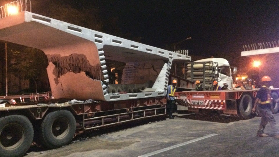 พนักงานบริษัทยูนิคเร่งเคลื่อนย้ายรถบรรทุก 22 ล้อ ที่ขนแท่งปูนคอนกรีตเสริมเหล็กสำหรับทำคานรถไฟฟ้าสายสีแดงที่เสียหลักเฉี่ยวชนกันเองกับรถเครน และรถกระบะอีก 2 คัน กีดขวาง 2 ช่องการจราจรขวาสุดบริเวณถนนวิภาวดีรังสิตขาออก ใต้ทางด่วนโทลล์เวย์ ฝั่งตรงข้ามสโมสรตำรวจ ส่งผลให้การจราจรติดขัดยาวหลายกิโลเมตร โดยมีเจ้าหน้าที่ตำรวจ เจ้าหน้าที่ดับเพลิงลาดยาว และเจ้าหน้าที่กู้ภัยช่วยอำนวยความสะดวกการจราจร แต่การเคลื่อนย้ายเป็นไปด้วยความยากลำบาก