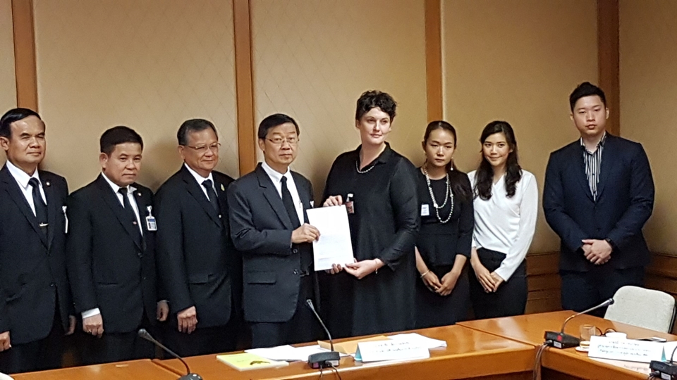 นายสุรชัย เลี้ยงบุญเลิศชัย รองประธานสภานิติบัญญัติแห่งชาติ (สนช.) รับหนังสือจาก นางเอมี่ กุลโรจน์ปัญญา ผู้อำนวยการสื่อสารองค์กรและนโยบายของบริษัท UBER ที่เสนอให้แก้ไขกฎหมายให้รองรับการให้บริการ UBER ผ่านแอพพลิเคชั่นบนโทรศัพท์มือถือให้ประชาชนมีสิทธิในการเดินทางได้เต็มที่ มีทางเลือกการเดินทางที่ประหยัด โปร่งใสและปลอดภัย ไม่ปฏิเสธการเดินทาง ใช้รถอย่างมีประสิทธิภาพ แบ่งปันการเดินทาง สามารถดึงดูดนักท่องเที่ยว และสร้างโอกาสทางเศรษฐกิจแก่คนไทย ซึ่งขณะนี้มีผู้ที่เข้าร่วมเป็นพาร์ทเนอร์กับ UBER แล้วกว่า 5 หมื่นราย ซึ่งเป็นจำนวนมากกว่าการเสนอแก้กฎหมายถึง 5 เท่า นอกจากนี้ยังหยิบยกกรณีที่หลายประเทศใช้บริการ UBER แบบถูกกฎหมายแล้ว เช่น ประเทศสิงคโปร์ มาเลเซีย อินโดนีเซีย ฟิลิปปินส์ เมียนมา และเวียดนาม แต่ในประเทศไทยการนำรถยนต์ส่วนตัวมาให้บริการนั้นยังผิดพระราชบัญญัติรถยนต์อยู่