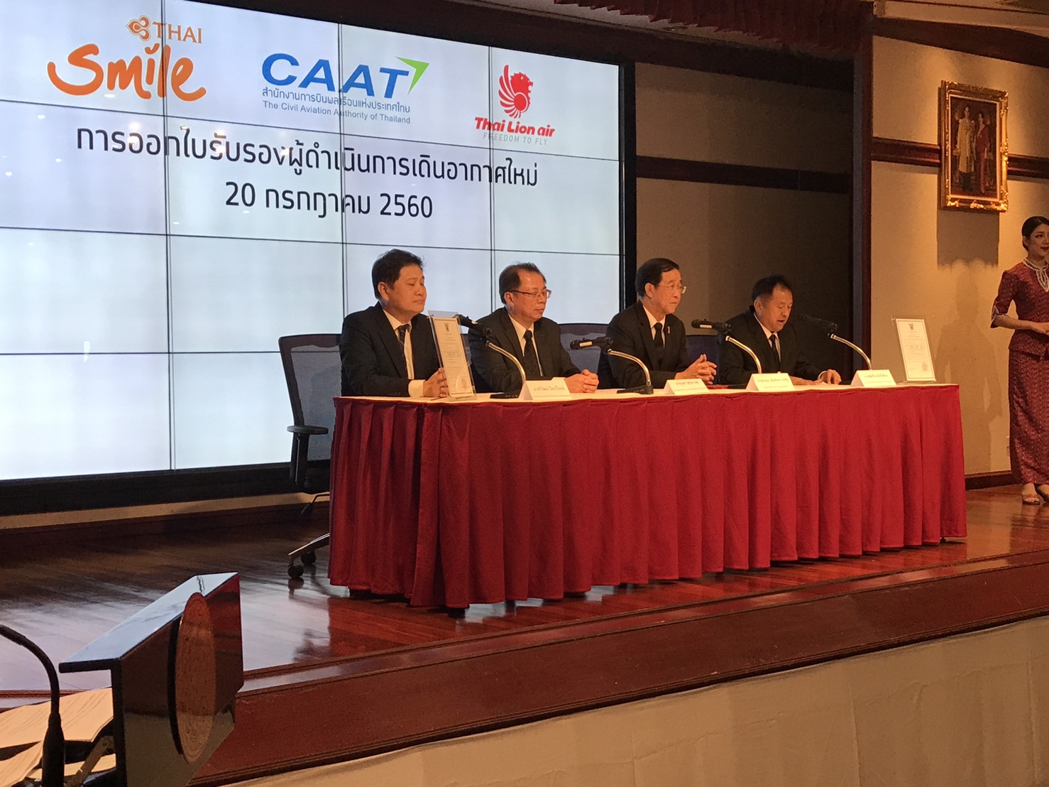 กรุงเทพฯ 20 ก.ค. – กพท.มอบใบอนุญาตเดินอากาศใหม่อีก 2 สายการบิน ทั้งไทยสมายล์และไลอ้อนแอร์ ขณะที่ผลการตรวจมาตรฐานรักษาความปลอดภัยสนามบินสุวรรณภูมิ-ดอนเมืองเสร็จพรุ่งนี้ มั่นใจแนวโน้มผลออกดี