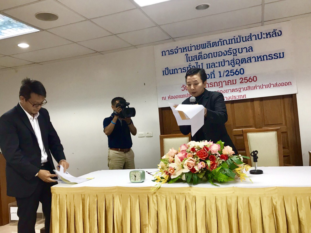 ผู้สื่อข่าวรายงานบรรยากาศจากกรมการค้าต่างประเทศหลังจากเปิดให้ผู้สนใจยื่นซองตรวจสอบคุณสมบัติเข้าร่วมประมูลมันสำปะหลังในสตอกรัฐที่เหลือ 3,700 ตัน โดยช่วงเช้าวันนี้ (21 ก.ค.) เอกชนที่ผ่านการตรวจสอบคุณสมบัติ 2 ราย ได้แก่ บจก.ผางามกิจเกษตรเชียงราย และ บจก.จริชัย โปรดิวซ์ ได้มายื่นซองเสนอราคาประมูลมันสำปะหลังในสตอกรัฐ ปริมาณรวม 3,700 ตัน แบ่งเป็นการประมูลทั่วไป หรือมันสำปะหลังคุณภาพดีกว่า 3,449 ตันในคลังจังหวัดเชียงราย และการประมูลมันสำปะหลังเพื่อเข้าสู่อุตสาหกรรมอีกกว่า 263 ตันในคลังจังหวัดอุบลราชธานี ซึ่งเอกชนทั้ง 2 รายยื่นประมูลเฉพาะมันสำปะหลังคุณภาพดี 3,449 ตันเท่านั้น ทำให้ในส่วนมันสำปะหลังเพื่ออุตสาหกรรม 263 ตัน ยังไม่มีเอกชนรายใดยื่นประมูลครั้งนี้แต่อย่างใด