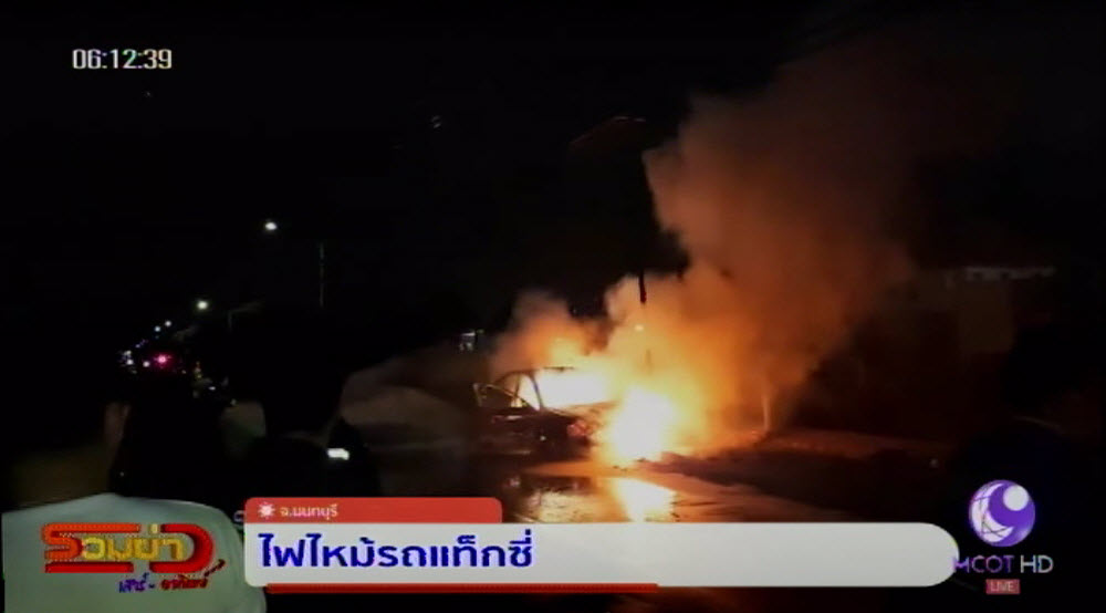 นนทบุรี 22 ก.ค.-ไฟไหม้รถแท็กซี่ บริเวณถนนเลียบคลองประปา อ.ปากเกร็ด จ.นนทบุรี เจ้าหน้าที่ดับเพลิงระดมฉีดน้ำประมาณ 15 นาที เพลิงจึงสงบ พบรถเสียหายทั้งคัน ส่วนคนขับรอดชีวิต เบื้องต้นคาดเกิดจากระบบแก๊สผิดปกติ