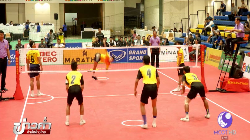 ตะกร้อชิงชนะเลิศแห่งประเทศไทยชิงถ้วยพระราชทาน ม.ว.ก. ครั้งที่ 39 ที่ศูนย์การค้าแฟชั่นไอส์แลนด์ ประเภททีมเดี่ยวชาย รุ่นอายุไม่เกิน 20 ปี รอบชิงชนะเลิศ สถาบันพลศึกษา ที่เห็นด้านหน้า พบกับทหารบก ซึ่งทั้งคู่ไม่เคยเป็นแชมป์รายการนี้มาก่อนผลปรากฏว่า สถาบันพลศึกษาศรีสะเกษ เอาชนะไปได้ 2 เซตรวด 21-13และ 21-13 คว้าแชมป์ไปครองได้เป็นสมัยแรก.-สำนักข่าวไทย