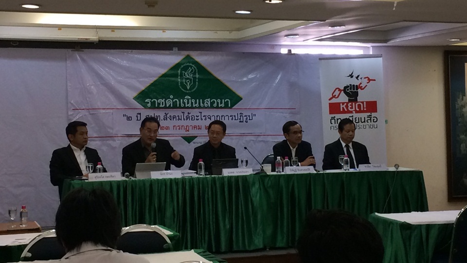 สมาคมนักข่าวนักหนังสือพิมพ์แห่งประเทศไทย 23 ก.ค.- อดีต สปท. ชี้ 2 ปี สปท.คาดหวังไม่ได้ เพราะโครงสร้างส่วนใหญ่เป็นราชการ ขณะที่ตัวแทนพรรคการเมืองและนักวิชาการชี้ประเทศอยู่ในวังวนรัฐราชการ