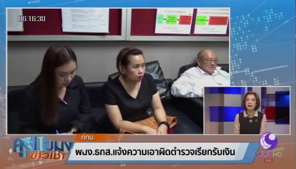 กรุงเทพฯ 24 ก.ค.-พนักงานฝ่ายไอที ธ.ก.ส.แจ้งความกล่าวหานายตำรวจยศ พล.ต.ต. ผู้บังคับการตำรวจภูธรจังหวัดหนึ่ง พร้อมพวก เรียกรับเงินค่าทำคดีฉ้อโกง จำนวน 500,000 บาท