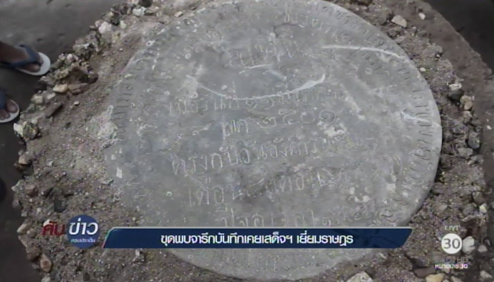 เชียงราย 28 ต.ค.- ชาวบ้านสันทรายหลวงขุดพบจารึก บันทึกในหลวง ร.9 เคยเสด็จฯ เยี่ยมราษฎร ต.สันทราย จ.เชียงราย