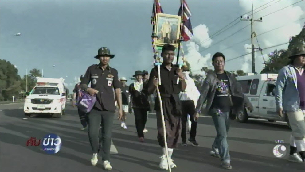 ภูมิภาค 28 ต.ค.- ประชาชนจากหลายจังหวัดเดินเท้าจากบ้านเกิดระยะทางไกลหลายร้อยกิโล มุ่งหน้าพระบรมมหาราชวัง เพื่อแสดงความอาลัยต่อพระบาทสมเด็จพระปรมินทรมหาภูมิพลอดุลยเดช
