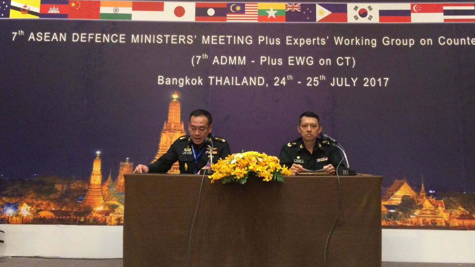 กระทรวงกลาโหมแห่งราชอาณาจักรไทย และกระทรวงกลาโหมสาธารณรัฐประชาชนจีน ร่วมจัดการประชุมคณะทำงานผู้เชี่ยวชาญด้านการต่อต้านการก่อการร้าย ในกรอบการประชุมรัฐมนตรีกลาโหมอาเซียน-กับรัฐมนตรีกลาโหมประเทศคู่เจรจา ครั้งที่ 7 (ADMM Plus EWG on CT) ระหว่างวันที่ 23-26 กรกฎาคม 2560 ณ โรงแรม เดอะ สุโกศล กรุงเทพฯ โดยผู้เข้าร่วมประชุม ประกอบด้วยผู้แทนจากประเทศสมาชิกอาเซียน ประเทศคู่เจรจา และสำนักเลขาธิการอาเซียน ประมาณ 100 คน
